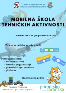 Zajednica tehničke kulture Primorsko – goranske županija u suradnji s Osnovnom školom dr. Ivana Pančića Bribir poziva učenika na zabavno edukativne radionice: – radionice iz…